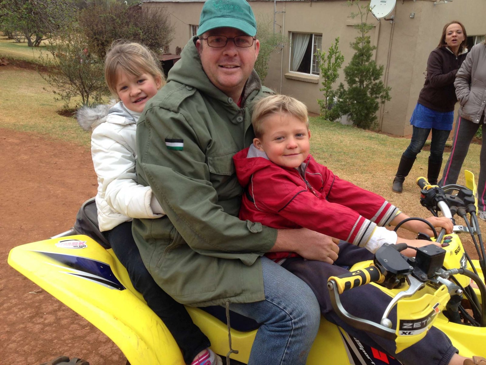 Morne en kinders op die vierwiel.